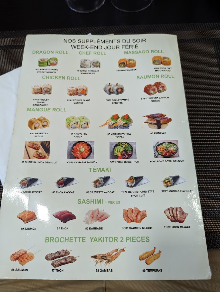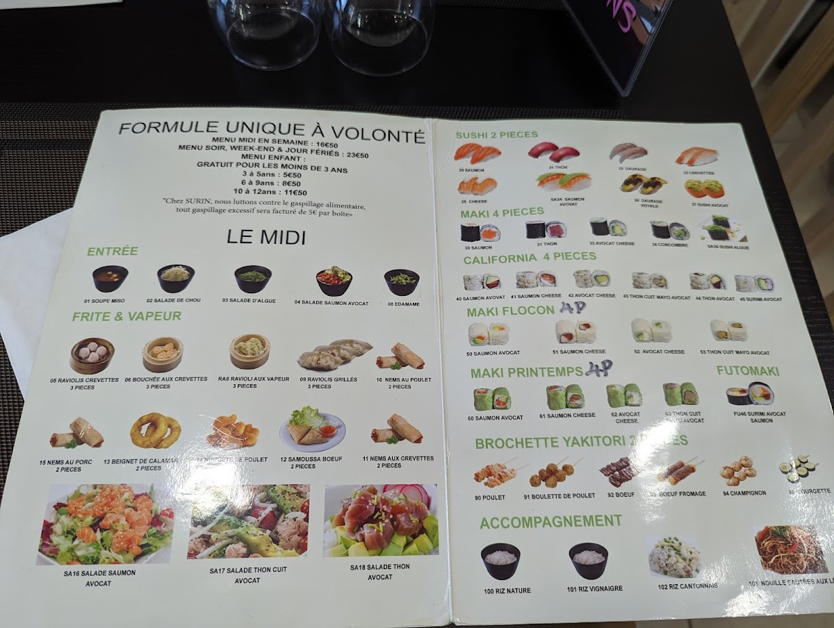 Excellent surprise in this restaurant which doesn't look like much. The food is quality. The fish in the sushi and makis is fresh and tasty, which is rare in France. At lunchtime there is a single all-you-can-eat menu for 16.50. We will return with pleasure. You can go there with your eyes closed. The lady serving takes great care. Nothing to complain about except the setting but that's just to give a negative point (it's ridiculous).